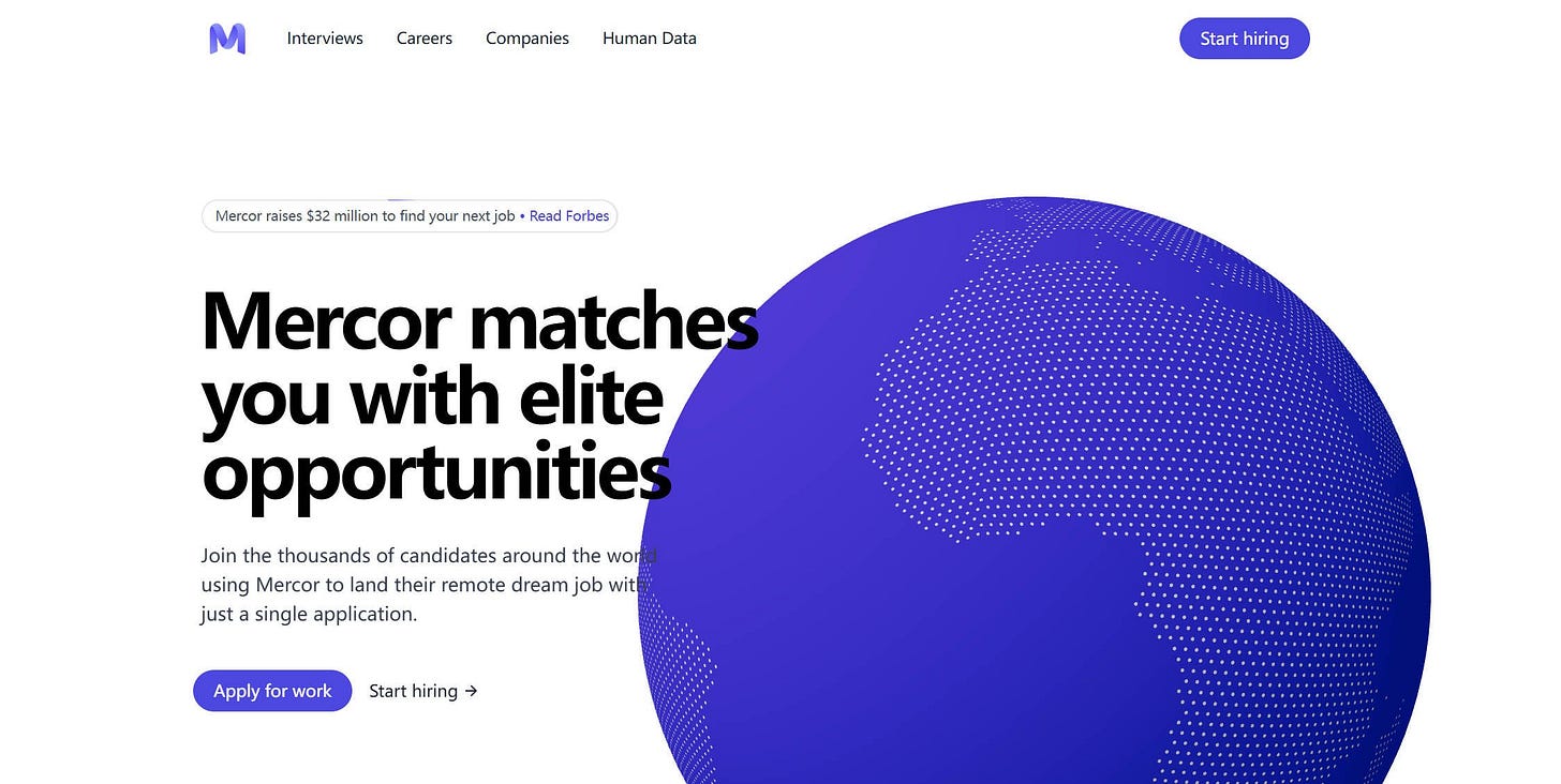 Mercor 採用AI人才預測模型,分析求職者的技能、經驗與優勢,並將其精準匹配至需要相應能力的公司。其核心價值主張是:「只需一次申請,即可獲得理想的遠端工作機會。」