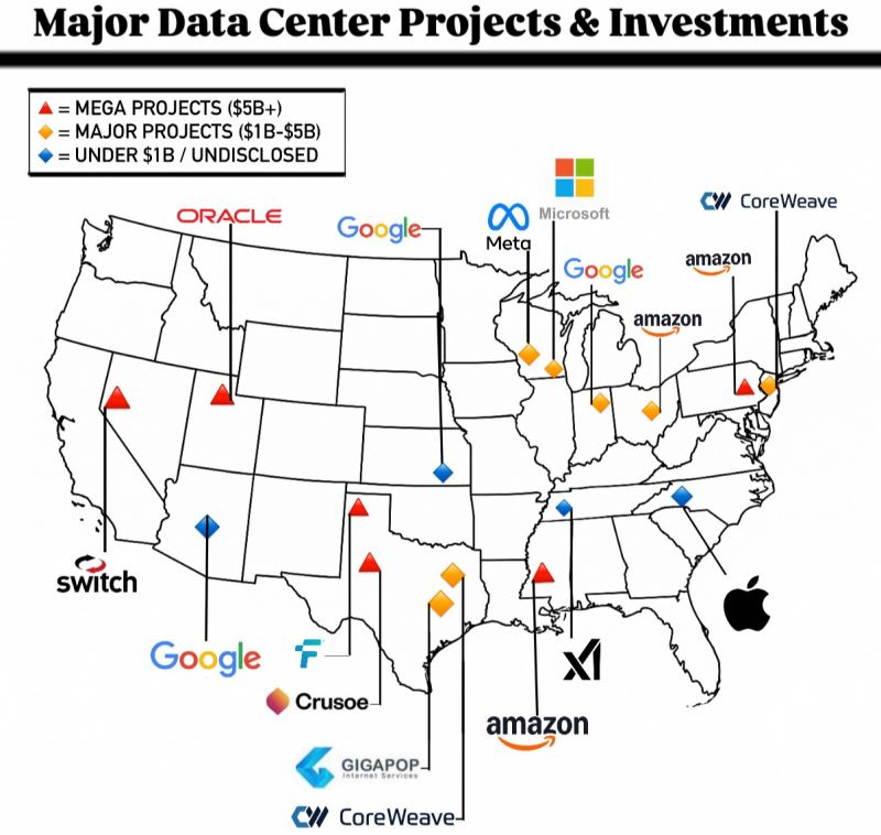美國本土主要資料中心計畫與投資項目