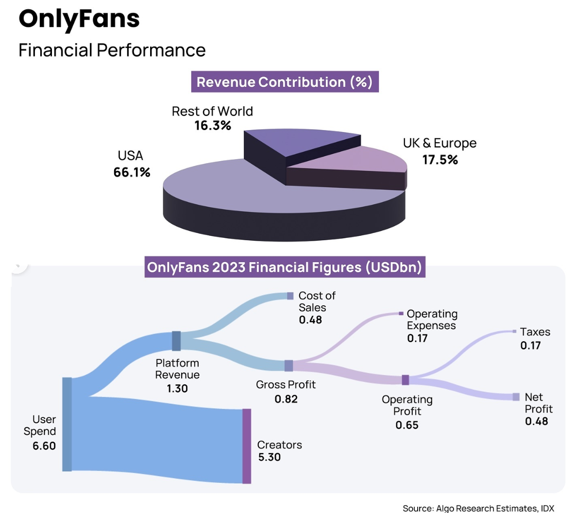 OnlyFans 擁有數百萬用戶的成人內容訂閱平台,該網站的擁有者Fenix International,Fenix 由 43 歲的烏克蘭裔美國企業家Leonid Radvinsky 擁有,自2020年以來,他從這家高盈利網站獲得了近13億美元的股息。