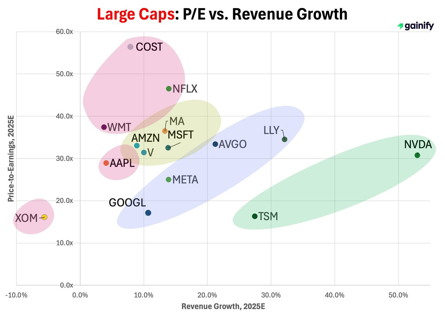 本文將以最新的「P/E 與 Revenue Growth」散點圖為依據,進一步解析各大型股的估值與競爭力,並指出如何避免「指標迷思」,做出更精準的投資決策。