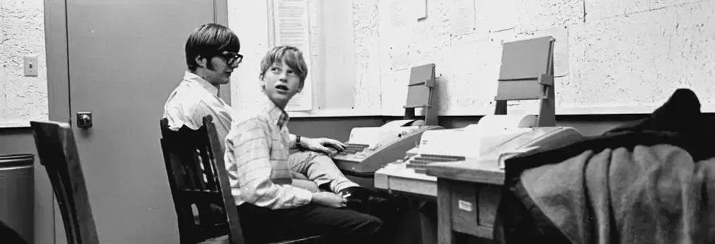 更重要的是,蓋茲在湖濱中學的外部專案中結識了一位資深工程師,這位「恩人」以教練式指導幫助他將理論轉化為實踐。從調試程式碼到優化系統,蓋茲在高強度的實戰中迅速成長。他將這段經歷形容為「不吃不睡不說話,只冒出時間」的沉浸式學習,這種全神貫注的狀態成為他日後成功的基石。據《連線》雜誌的分析:「湖濱中學的自由環境與早期實戰機會,讓蓋茲在18歲前累積了近萬小時的程式設計經驗,遠超同齡人。」(Wired, The Making of Bill Gates, 2024)。